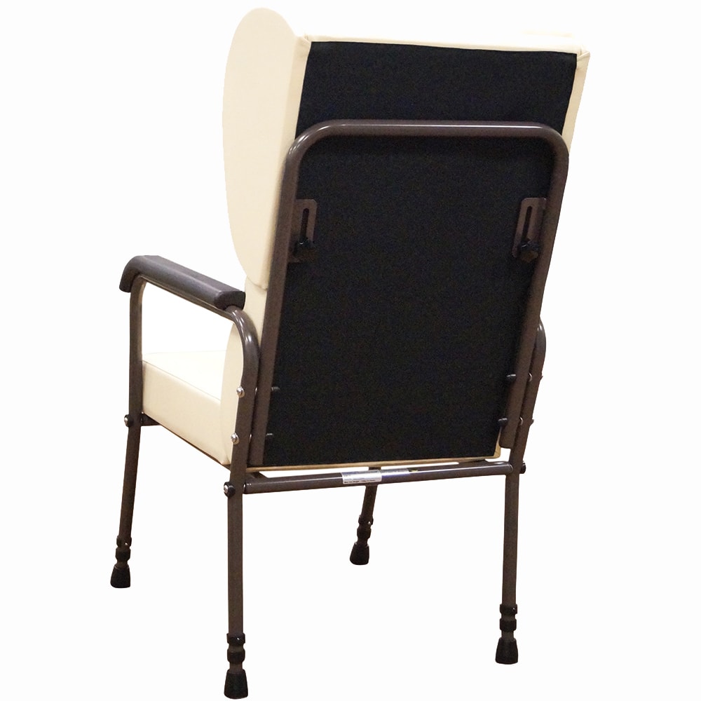 Extra thick seat and back cushions for comfort, and upholstered in vinyl for easy cleaning